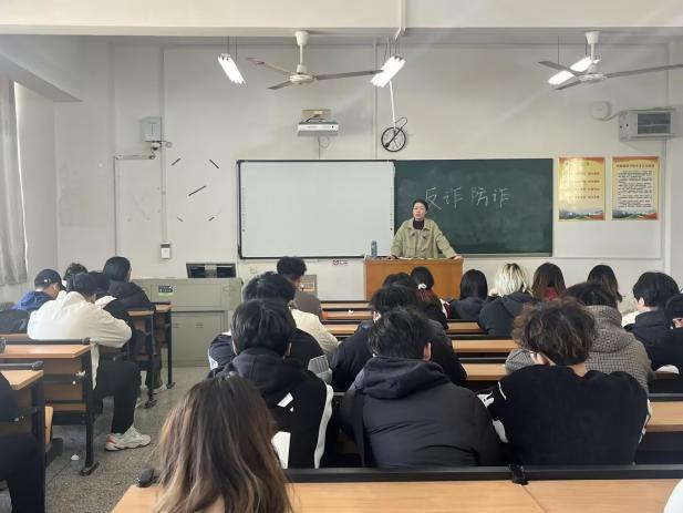 班会以近期高校高发诈骗案例为切入点,重点分析了“刷单返利”“冒充公检法”“冒充客服退费”“虚假购物服务”及“虚拟网络游戏产品交易”等常见诈骗类型。辅导员深入剖析各类骗局的手法与套路,引导学生擦亮双眼、摒弃贪念,切实增强防骗能力。